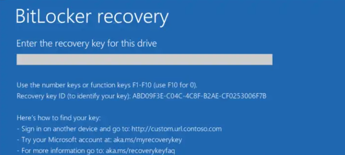 BitLocker 是一项 Windows 安全功能,可为整个卷提供加密,解决因设备丢失、被盗或不适当停用而导致数据被盗或泄露的威胁。但是,在2020年后的新笔记本电脑一般已开启Bitlocker功能(即硬盘中数据已被加密),若计算机硬件有改变或损坏,重新进入已加密的系统会要求输入“恢复密钥”,如下图。若密钥丢失,则加密分区中的数据全部丢失!