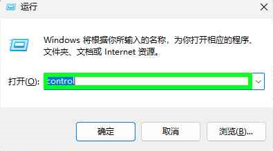 同时按Windows徽标键+R 调出 运行,并输入control,回车