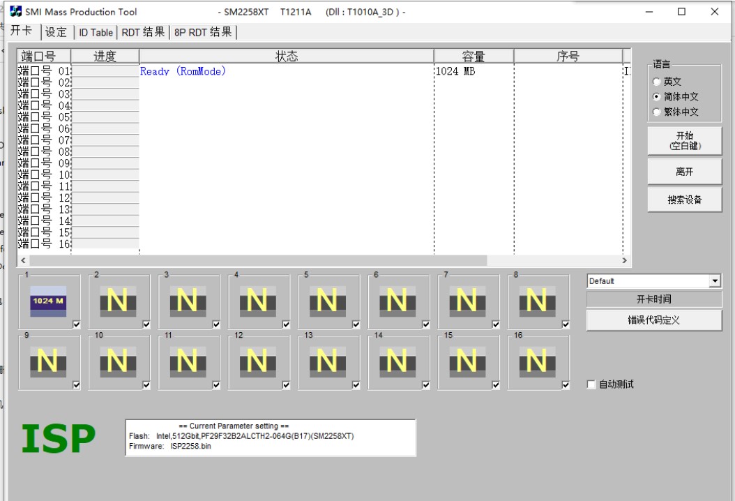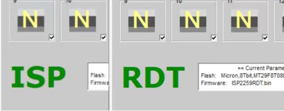 RDT测试,不勾选“RDT测试”即表示正常ISP开卡,开卡后重新拔插SSD再分区即可正常使用。勾选“RDT测试”相当于写入数据,再读取校验,用来标记坏块。下图左侧是正常ISP开卡,右侧是RDT测试开卡。